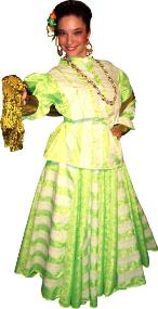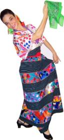first is an beaded chaquira blouse, and a double circle satin skirt.