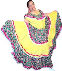 Doble circle skirt made of solid cotton and cotton print fabric.