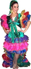 includes four (4) pieces: Skirt, Tie blouse, Headwrap, and trunks.