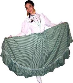 A skirt and blouse combo. Each set is constructed of a doble vuelo