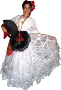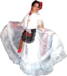 Organza skirt adorned with various rows of lace. Satin Quetzquemitl